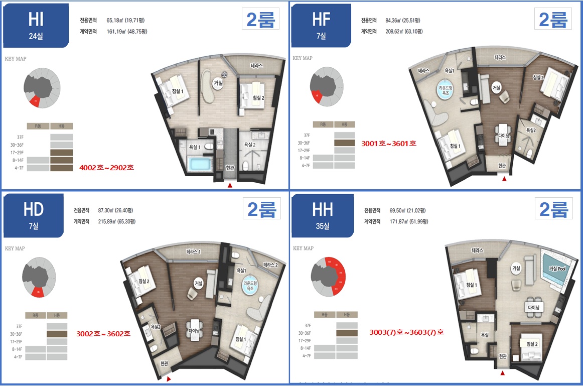 - HP 타입 → 파노라마 바다뷰, 고층 프리미엄